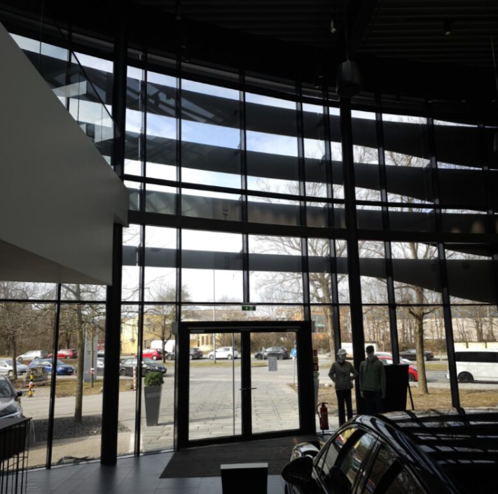 Im neuen Porsche Zentrum zeigt sich, wie Design und Technik verschmelzen: INFRASHADE® passt sich nicht nur dem Sonnenstand an, sondern auch der Porsche-Philosophie – keine unnötigen Linien, keine sichtbaren Bauteile. Der Sonnenschutz bleibt nahezu unsichtbar – nur bei genauem Hinsehen ist eine feine Trennlinie zwischen den Folien erkennbar.